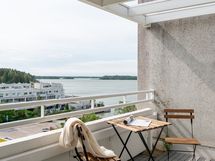- näkymät kattojen ylle sekä Meritorille ja merelle avautuvat upeat maisemat. Parveke noin etelään, asunnon ikkunat neljään ilmansuuntaan.