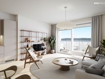 Korttelin korkeimmalle kohdalle tulevan Vestan asunnoissa on merelle päin avautuva tilava lasitettu parveke. Huomioimme kotien suunnittelussa asiakkaidemme toiveet avaruudesta ja luonnonvalosta. Suurien ikkunapintojen lisäksi parvekkeelle on liukulasiovi. Toimivissa huoneistoissa on avarat oleskelutilat, parkettilattiat, avokeittiö integroituine kodinkoneineen ja reilusti säilytystilaa.