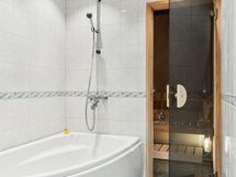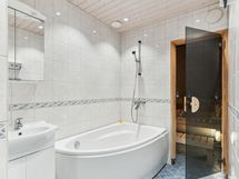 - Kylpyhuone, suihku, peilit, pesukoneliitäntä, lattialämmitys, kiinteät valaisimet, sauna