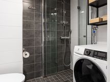 - Pesutilojen kuvaus: Putkiremontissa vuonna 2018 kokonaisuudessaan uusittu kylpyhuone, suihku, kääntyvät suihkuseinät, peilikaappi, allaskaappi, pyyhekuivauspatteri, wc-istuin, pesukoneliitäntä, mukavuuslattialämmitys, seinät laatoitettu, lattia laatoitettu. Erillisen WC:n kuvaus: Peilikaappi, allaskaappi, wc-istuin, seinät laatoitettu, lattia laatoitettu.