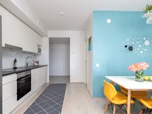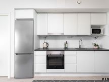 - Keittiön varusteet: Jääkaappipakastin, liesi ja liesituuletin. Liesi: Keraaminen liesi.