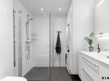 - Pesutilojen varusteet: WC-istuin, suihku, pesukoneliitäntä, allaskaappi ja suihkuseinä.