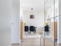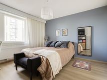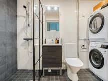 - Pesutilojen varusteet: WC-istuin, suihku, suihkuseinä, pesukoneliitäntä, lattialämmitys, peilikaappi, pesuallas, allaskaappi ja bidee-suihku. Pesutilojen kuvaus: Vuonna 2022 täysin remontoitu tyylikäs kylpyhuone, jossa on tilaa pesutornille ja mukavuutena lattialämmitys.