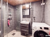 - Pesutilojen varusteet: Suihkuseinä, pesukoneliitäntä, peilikaappi, pesuallas, allaskaappi, pyyhekuivain ja lattialämmitys. Erillisten WC:n lukumäärä: 1. Erillisen WC:n varusteet: WC-istuin, peili, pesuallas, lattiakaivo ja bidee-suihku.