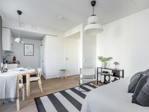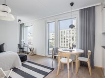 Yksiö loistavalla sijainnilla kulkuyhteyksien ja palveluiden äärellä. Kodikas yksiö kuudennessa kerroksessa, jossa viihtyisyyttä luo olohuoneen yhteydessä oleva ranskalainen parveke. Kodin keittiössä on aina tyylikkäät valkoiset kaapistot ja harmaa työtaso, asunnon lattiamateriaaliksi on valittu kaunis Tarketin parketti.
