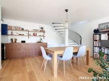 - Keittiön varusteet: Jenkkikaappi (LG jääpalakoneella), erillisuuni (Aeg), liesi (Bosch ja Siemens), liesituuletin (Savo), astianpesukone (Siemens) ja viinikaappi. Liesi: Kaasuliesi ja keraaminen liesi. Työtason materiaali: Puu. 2022 remontoitu tyylikäs Taitopuun keittiö.