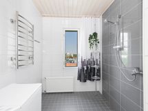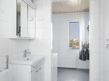 - Pesutilojen varusteet: WC-istuin, suihku, pesukoneliitäntä, peilikaappi, pesuallas, allaskaappi ja bidee-suihku.