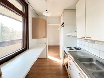 Tässä hissitalon neljännen kerroksen kodissa on erinomainen pohjaratkaisu. Olohuoneen ja makuuhuoneen välissä on ikkunallinen keittokomero, jonne on käynti kummastakin huoneesta. Myös isolle, lasitetulle itäparvekkeelle on käynti kummastakin huoneesta. Tilava kylpyhuone uusitaan meneillään olevan linjasaneerauksen yhteydessä. Säilytystilaa löytyy eteisen kaapistosta sekä isosta vaatehuoneesta.
