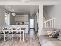 - Jääkaappi täyskorkea, pakastekaappi + jääpalakone, erillisuuni kiertoilma, liesitaso keraaminen, liesituuletin, astianpesukone, kaapistot, irralliset kaapistot, viinikaappi, kiinteät valaisimet.