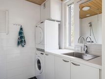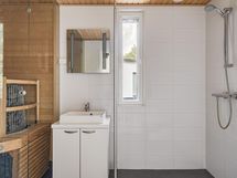 - Sauna, sähkökiuas Harvian torni, kylpyhuone, suihku 2 kpl, suihkuseinä yk ja ak, allaskaappi molemmiissa kph:ssa, pesukoneliitäntä ak, lattialämmitys koko hsto (ei ulkovarasto), kiinteät valaisimet.