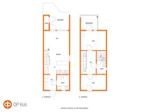 - Yläkerran toinen mh pohjoiseen ja toinen etelään, takapiha etelään. Näkymät yhtiön piha-alueelle.