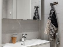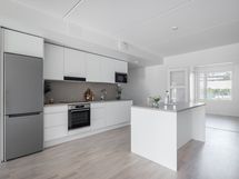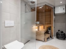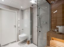 Ylellistä tunnelmaa asuntoon tuovat suuret ikkunat, laadukkaat parkettilattiat ja upea kylpyhuone omalla saunalla. Näyttävä Puustellin keittiö kvartsitasoilla ja Boschin kodinkoneilla tuo arkeen luksusta. Keittiössä on myös reilunkokoinen saareke, joten työskentelytila ei lopu kesken. Tilavasta ja viihtyisästä olohuoneesta on käynti isolle lasitetulle terassille sekä erilliselle, sisäpihan suuntaan aukeavalle asuntopihalle. Asunnossa on kaksi hyvän kokoista makuuhuonetta, joissa on reilusti säilytystilaa. Asuinmukavuutta nostaa erillinen wc, toisen makuuhuoneen ranskalainen parveke sekä asuintilat kattava vesikiertoinen lattialämmitys.