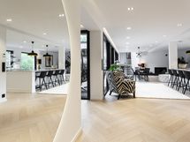 Lattiat on valettu uudestaan ja talon lattiapintoihin on asennettu vesikiertoinen lattialämmitys. Portaat ja lasikaiteet, lasiseinät ja sisä- ja ulko-ovet on uusia.