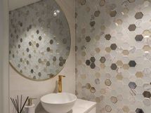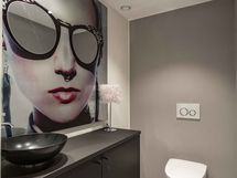 . Erillisen WC:n kuvaus: Talossa on yhteensä 6kpl wc-tiloja, joista neljä on kylpyhuoneiden yhteydessä. Ido seinä-wc, valkoiset kaapistot/laatikostot, seinissä ja lattiassa valkoiset suuret 60x120 marmorilaatat, tulikiven valkoiset kivitasot, hanat Tapwell.