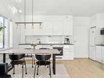 - Jääkaappi/pakastin, astianpesukone, erillisuuni- ja taso, liesituuletin (hormiin), kaapistot, kiinteät valaisimet