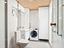 - Yläkerta: Kylpyhuone, sauna, suihku, suihkuseinä, mukavuuslattialämmitys, pesukoneliitäntä, kiinteät valaisimet, peili, kylpyhuonekaapistot, rättipatteri. Alakerta: Kylpyhuone, suihku, peili, allaskaappi, mukavuuslattialämmitys, kiinteät valaisimet.