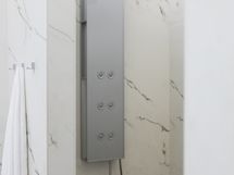 Yläkerran toinen kylpyhuone sijaitsee saunan yhteydessä. Tämä tila on varustettu tuplasuihkuin ja muuten täysin samoin materiaalein kuin päämakuuhuoneen yhteydessä oleva kylpyhuone.