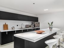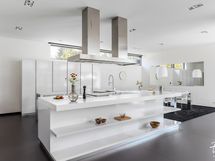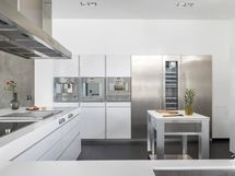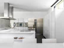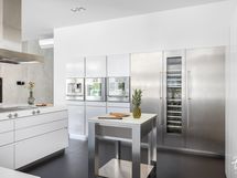 - Tämän kodin tilava keittiö on Italialaisen Binovan mallistoa. Kattavasti koneellistetussa keittiössä on paljon työskentely- ja laskutilaa. Keittiön katseenvangitsijana toimii suuri saareke, joka täyttää vaativammankin keittiömestarin kriteerit. Kaikki keittiökoneet: kahvikone, uuni, höyryuuni, 2 kpl lautaslämmittimiä, jääkaappi, viinikaappi, pakastin, 2 tiskikonetta, teppanyaki- paistotaso, sisägrilli sekä iso induktiotaso, ovat Gaggenaun laadukasta mallistoa.
