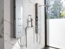 Pesuhuoneessa on kaksi suihkua ja on muuten kalustettu täysin samoilla varusteilla kuin päämakuuhuoneen kylpyhuone. . sähkökiuas