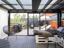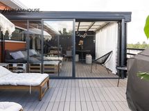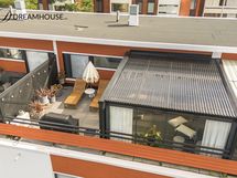 - Upea ja suuri, osittain katettu ja lasitettu kattoterassi