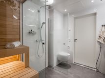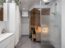 Ylellistä tunnelmaa tähän kulmahuoneistoon tuovat suuret ikkunat, laadukkaat parkettilattiat ja upea kylpyhuone omalla saunalla. Näyttävä Puustellin keittiö kvartsitasoilla ja Boschin kodinkoneilla tuo arkeen luksusta. Tilavasta ja viihtyisästä olohuoneen ja avokeittiön yhdistelmästä on käynti mukavan kokoiselle lasitetulle parvekkeelle josta aukeaa avarat näkymät. Asunnossa on reilunkokoinen päämakuuhuone ja pienempi makuuhuone, joka soveltuu hyvin työ- tai lastenhuoneeksi. Molemmista makuuhuoneista löytyy myös hyvin säilytystilaa. Asuinmukavuutta nostaa asuintilat kattava vesikiertoinen lattialämmitys.