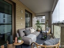 Asumisen mukavuudet ulottuvat kodin seinien ulkopuolelle. Tuultentietäjän ja viereisen talon asukkaiden käytössä ovat edustava lounge, sauna terasseineen ja kaksi pihaa leikki- ja kuntoilualueineen. Autolle on saatavilla oma suojainen hallipaikka.