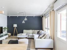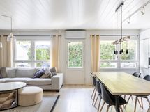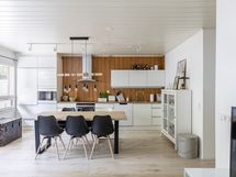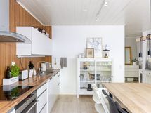 - Jääkaappi/pakastin, uuni, keraaminen liesi, liesituuletin, astianpesukone, mikroaaltouuni, välitila ja tasot laminaatti, lattia laminaatti.