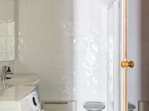 - Pesutilojen kuvaus: Suihku, suihkuseinä, peili, allaskaappi, pesukoneliitäntä, patteri. Lattia ja seinät laattaa. Erillisten WC:n lukumäärä: 1. Erillisen WC:n kuvaus: Wc, bideesuihku, peili, allaskaappi, patteri, lattialämmitys (sähkö). Lattia laattaa, seinät puuta.