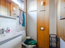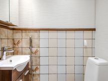 Tilaa pesutornille ja pyykkihuollon suunnitteluun. Ikkunasta mukavasti luonnonvaloa. Kulku pieneen erilliseen "tekniseen" tilaan, jossa vesivaraaja ja sähkökaappi. Erillisten WC:n lukumäärä: 2. Erillisen WC:n kuvaus: Kaksi erillistä wc:tä, toinen alakerrassa ja toinen yläkerrassa. Alakerran wc:ssä varusteina on allas, allaskaappi, peilikaappi, ledvalot, bidee suihku, wc-istuin, patteri. Seinät osittain laatoitetut, vinyylitapettia, lattia muovimatto, katto puuta.