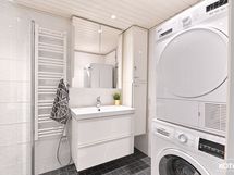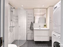 - Pesutilojen varusteet: WC-istuin, suihku, suihkuseinä, pesukoneliitäntä, lattialämmitys (Sähkötoiminen) ja kaapisto. Pesutilojen kuvaus: Kylpyhuone uusittu taloyhtiön toimesta vuonna 2017.
