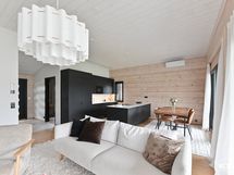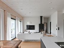 Kodin sydämessä on avoin olohuone-ruokailutila-avokeittiö, joka muodostaa viihtyisän kokonaisuuden perheen yhteisiin hetkiin. Suora kulku terassille jatkaa tilaa ulos.
