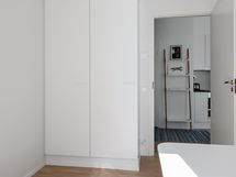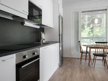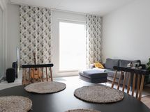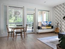 Asunnossa on lattialämmitys, normaalia korkeampi huonekorkeus ja isot ikkunat.