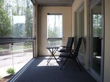 Oma sauna ja lasitettu parveke tuovat mukavia rentoutushetkiä. Kuten myös metsäinen maisema. Tilavaan kylpyhuoneeseen mahtuu hyvin pesukone tai pesutorni.