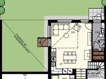 Sisääntulokerroksessa sijaitsevat nykyaikainen avokeittiö ja avara olohuone, jotka muodostavat yhtenäisen ja toimivan tilan arkeen ja juhlaan. Ensimmäisessä kerroksessa on lisäksi yksi makuuhuone, SPA henkinen kylpyhuone ja erillis wc.