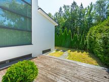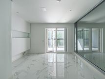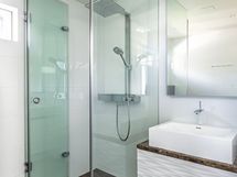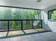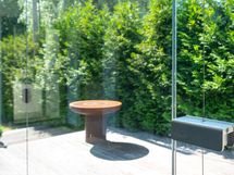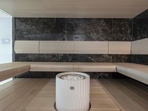 - Kiuas: Sähkökiuas. Upea lasiseinäinen sauna, jossa hienot vaaleat lauteet ja upotettu kiuas.