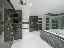 - Pesutilojen varusteet: WC-istuin, suihku, poreamme, suihkuseinä, lattialämmitys, peilikaappi, peili, pesuallas, allaskaappi ja bidee-suihku. Pesutilojen kuvaus: Kellarikerroksessa on mahtava iso SPA-osasto jossa upea sauna, kaksi suihkua, poreamme sekä tilaa olla. Tämä on hieno. Yläkerrassa kaksi hienoksi tehtyä kylpyhuonetta, toinen isoimman makuuhuoneen yhteydessä, jossa mm. poreamme. Toissa kylpyhuoneeseen on suihku, käynti käytävän puolelta. Ensimmäisessä kerroksessa on lisäksi kph. Erillisen WC:n kuvaus: WC:itä on jokaisessa kylpyhuoneessa. Yhteensä 4 kpl.