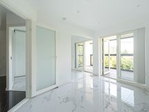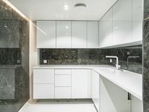 kalusteuunilla. Keittiössä lisäksi hyvä niemeke, jossa pesuallas sekä hyvät laskutilat.