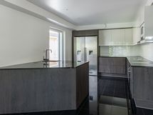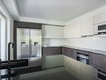 - Keittiön varusteet: Jääkaappi, erillisuuni, liesituuletin, astianpesukone, erillinen pakastin ja keittiösaareke. Liesi: Induktioliesi. L-mallinen keittiö varustettuna täyspitkillä jääkaapilla ja pakastimella, induktioliedellä sekä