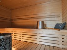 - Kiuas: Sähkökiuas. Lauteet Ja seinämateriaali: Leppä.