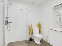 - Pesutilojen varusteet: Pesukoneliitäntä, suihkuseinä, wc-istuin, allaskaappi, lattialämmitys, peilikaappi, suihku ja kiinteät valaisimet. Erillisten WC:n lukumäärä: 1. Erillisen WC:n varusteet: Lattialämmitys, bidee-suihku ja peilikaappi.