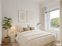 Tässä tehokkaasti suunnitellussa kodissa jokainen neliö on hyötykäytössä, ja säilytystilaa on reilusti. Erillinen makuuhuone, sekä avokeittiö-olohuone ovat arjessa toimivia. Kylpyhuone on tilava ja moderni.