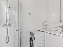 - Kylpyhuone, suihku, peilikaappi, kylpyhuonekaapisto, kiinteät valaisimet, vesikiertoinen lattialämmitys, pesukoneliitäntä, käsisuihku