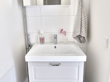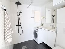 - Suihku, Peilikaappi, Allaskaappi, Laattalattia, Laattaseinä, Erillinen WC, Lattialämmitys