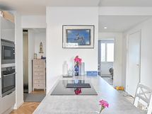 tuulettimella). Työtasot: laminaatti. Lattia: vinyyli. Seinät: maalattu.