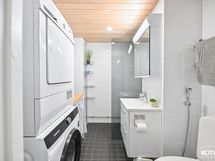- Pesutilojen kuvaus: Täysin uusittu kylpyhuone 2021. Varustus: pesukoneliitäntä, lattialämmitys, wc-istuin,