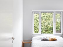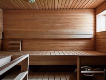 - Ikkunallinen sauna, sähkökiuas, tumma lasiovi.