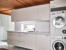 - Työtason materiaali: Kivi. Puustellin keittiö ja kodinkoneet 2017. Kivitasot, laadukkaat Siemensin kodinkoneet, 2 x jää/viileäkaappi, iso pakastin, mikroaaltouuni, Mielen astianpesukone (2019), AEG induktioliesi/uunikokonaisuus integroidulla liesituulettimella. Upea keittiösaareke, jonka vierellä iso erillinen ruokailutila. Keittiö porrastettu.