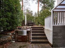- Pesutilojen kuvaus: Pesuhuone/saunan yhteydessä: kaksi suihkua, suihkuseinä, käsienpesuallas, allaskaapisto, peilikaappi. Yläkerta: wc-istuin, käsienpesuallas, allaskaapisto, peilikaappi, suihku, suihkukaappi tummalla Techglass-suihkuseinällä. Ikkuna. Erillisten WC:n lukumäärä: 2. Erillisen WC:n kuvaus: Alakerrassa kaksi erillistä wc:tä. Wc-istuin, käsienpesuallas, allaskaapisto, bidee-suihku, peilikaapisto.