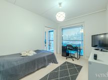 Asunnon kolmas kerros tarjoaa mukavat näkymät lasitetulta parvekkeelta, ja tilava olohuone sekä avokeittiö tekevät tästä kodista viihtyisän paikan asua. Keittiössä on kaikki tarvittavat mukavuudet sekä keittiö saareke joka tuo mukavasti laskutilaa.