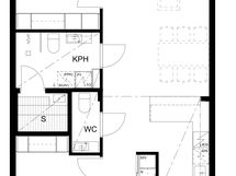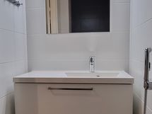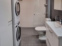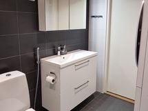 - suihku, suihkuseinä, laattaseinä, laattalattia, erillinen WC, lattialämmitys, allaskaappi, peilikaappi, pyykkikaappi